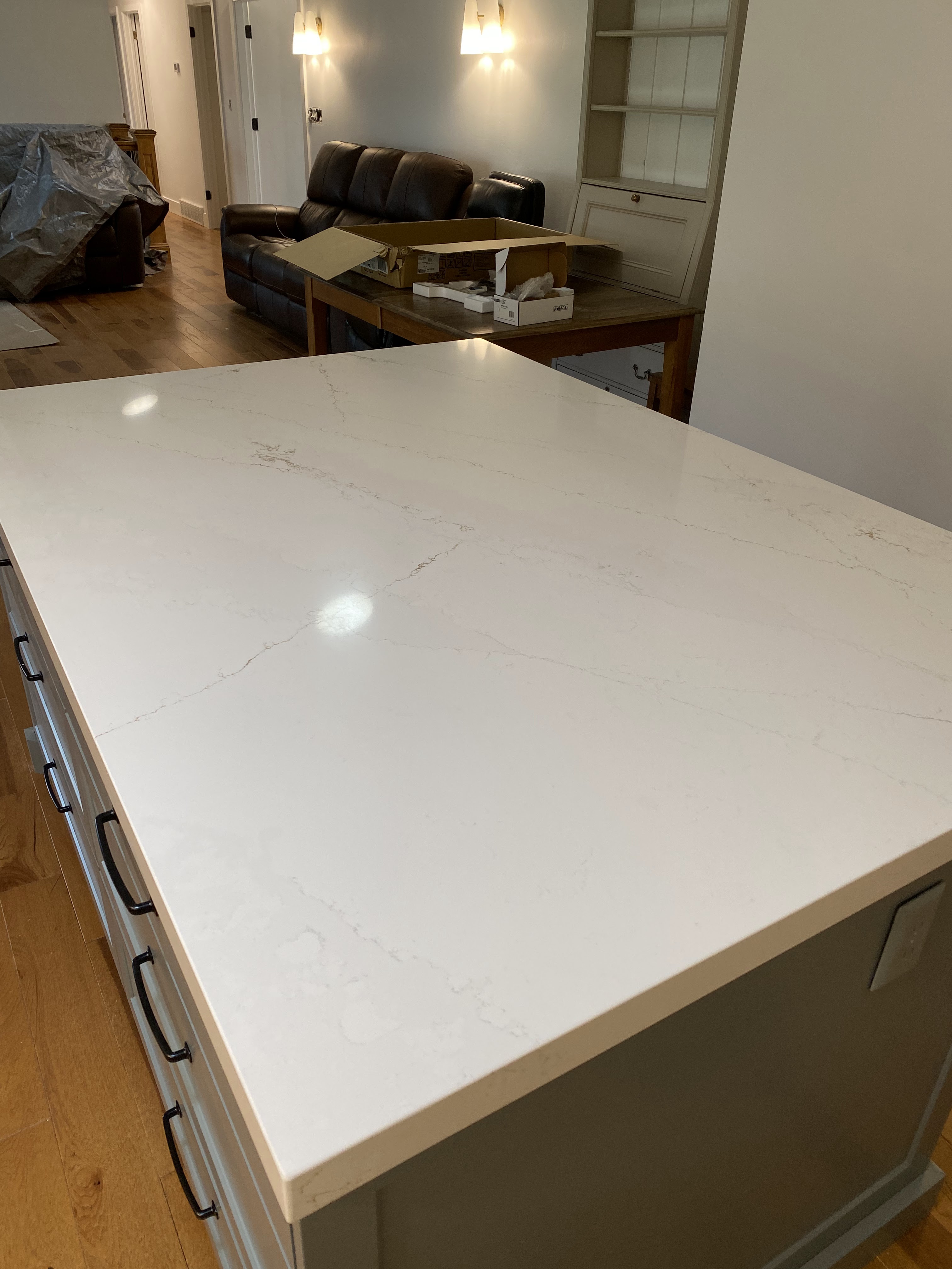 As I mentioned before, I had a designer help with the fireplace. She then said she could help me with the kitchen and picking out lights and stuff so we had a cohesive look. She did some preliminary drawings and I did already have a pretty good idea what I wanted. But I was just not sure how to fit things in and what the best layout would be.